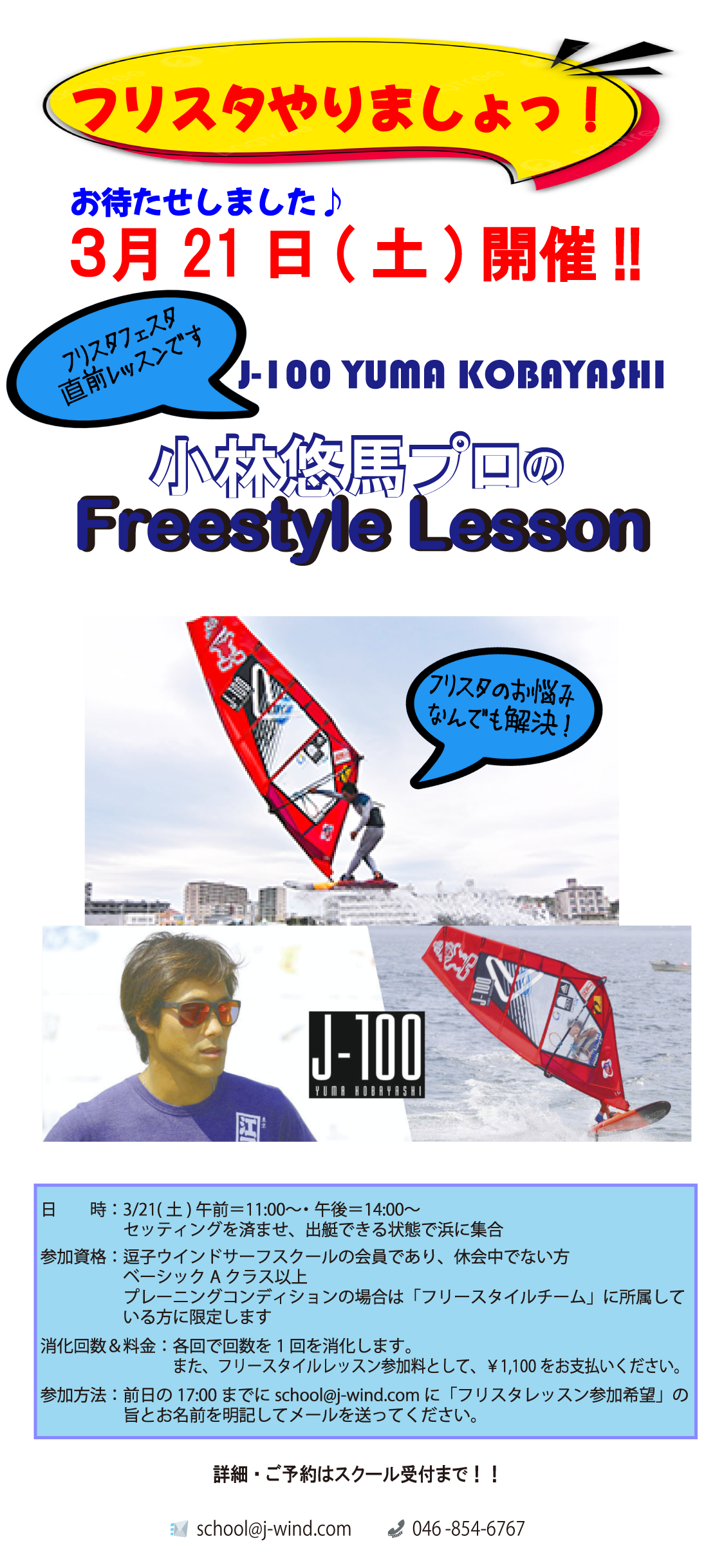 | ■3/22(土)小林悠馬プロによる「フリースタイルレッスン」を開催します。詳細はこちら |